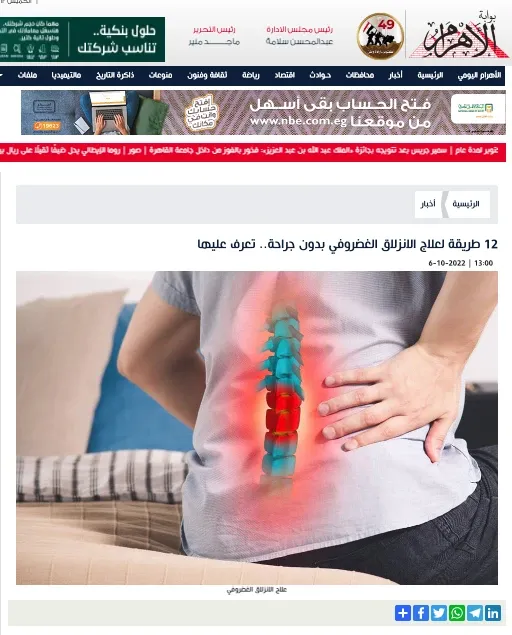 بوابة الاهرام نقلاً عن دكتور محمد قورة" 12 طريقة لعلاج الانزلاق الغضروفي بدون جراحة.. تعرف عليه...