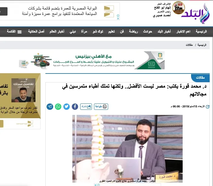 موقع صدي البلد الاخباري ينشر " د. محمد قورة يكتب: مصر ليست الأفضل.. ولكنها تملك أطباء متمرسين ف...